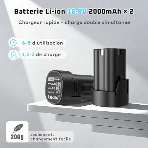 • Configuration de 2 piles : les sécateurs électriques Laecabv sont actionnés par des moteurs sans balais et leur durée de vie est 3 à 5 fois celle des moteurs à brosses traditionnels. Équipé de...