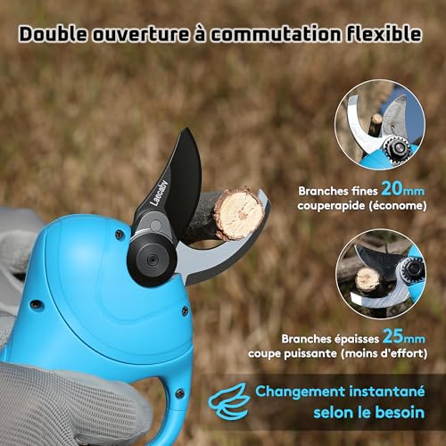• 2 gammes de coupe réglables : la lame de ciseaux élagage à batterie est forgée en acier allié à haute résistance, aiguisée et antirouille et peut couper des branches de 0 à 20 mm ou 0 à 25...