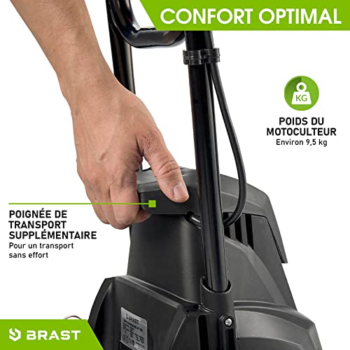 BRAST motobineuse électrique - puissante: 1200 Watt 40cm largeur, 22 cm profondeur de travail - 6 fraises -3 MOD diff. puiss.- sécure - ergonomique - 400 trs/min - motoculteur électrique, filaire