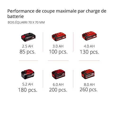 - Coupe sans effort : il coupe sans peine des branches jusqu’à 60 mm* d’épaisseur par simple pression sur la gâchette. Permet de réaliser 30 à 190 coupes par charge de batterie