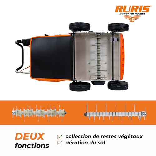 - Collecte des débris végétaux : Sac collecteur de 45 L inclus, pour ramasser facilement les résidus de racines et d’herbes mortes, assurant un gazon plus vert et plus sain.