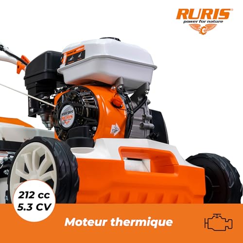 - Moteur thermique puissant : Équipé d’un moteur 4 temps de 212 cm³ développant 5,3 CV, idéal pour les travaux intensifs d’entretien du gazon, aussi bien à usage domestique que professionnel.