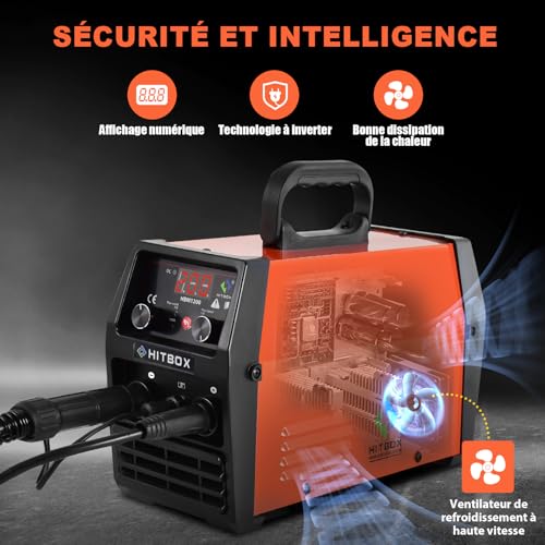 • MACHINE DE SOUDAGE 3-EN-1 SANS GAZ : Le HITBOX HBM1200 combine trois modes de soudage : MIG, ARC et LIFT TIG. En mode MIG sans gaz, il utilise du fil fourré (flux core) – aucun gaz de protection...