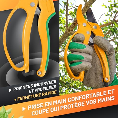 • FAIT POUR DURER ➤ Ciseaux puissants, légers et agréable à manier et fait pour durer. Il est recommandé d'huiler ce sécateur de jardin (même avec un simple chiffon) avant et après chaque...